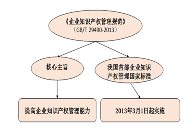 “標”指的是2013年3月1日正式實(shí)施的GB/T29490-2013《企業(yè)知識產(chǎn)權管理規范》,該標準是我國首部企業(yè)知識產(chǎn)權管理國家標準,由國家知識產(chǎn)權局制訂,經(jīng)由國家質(zhì)量監督檢驗檢疫總局、國家標準化管理委員會(huì )批準頒布。企業(yè)知識產(chǎn)權貫標,顧名思義,就是企業(yè)開(kāi)展貫徹實(shí)施國家標準《企業(yè)知識產(chǎn)權管理規范》GB/T29490-2013的行為活動(dòng)。
